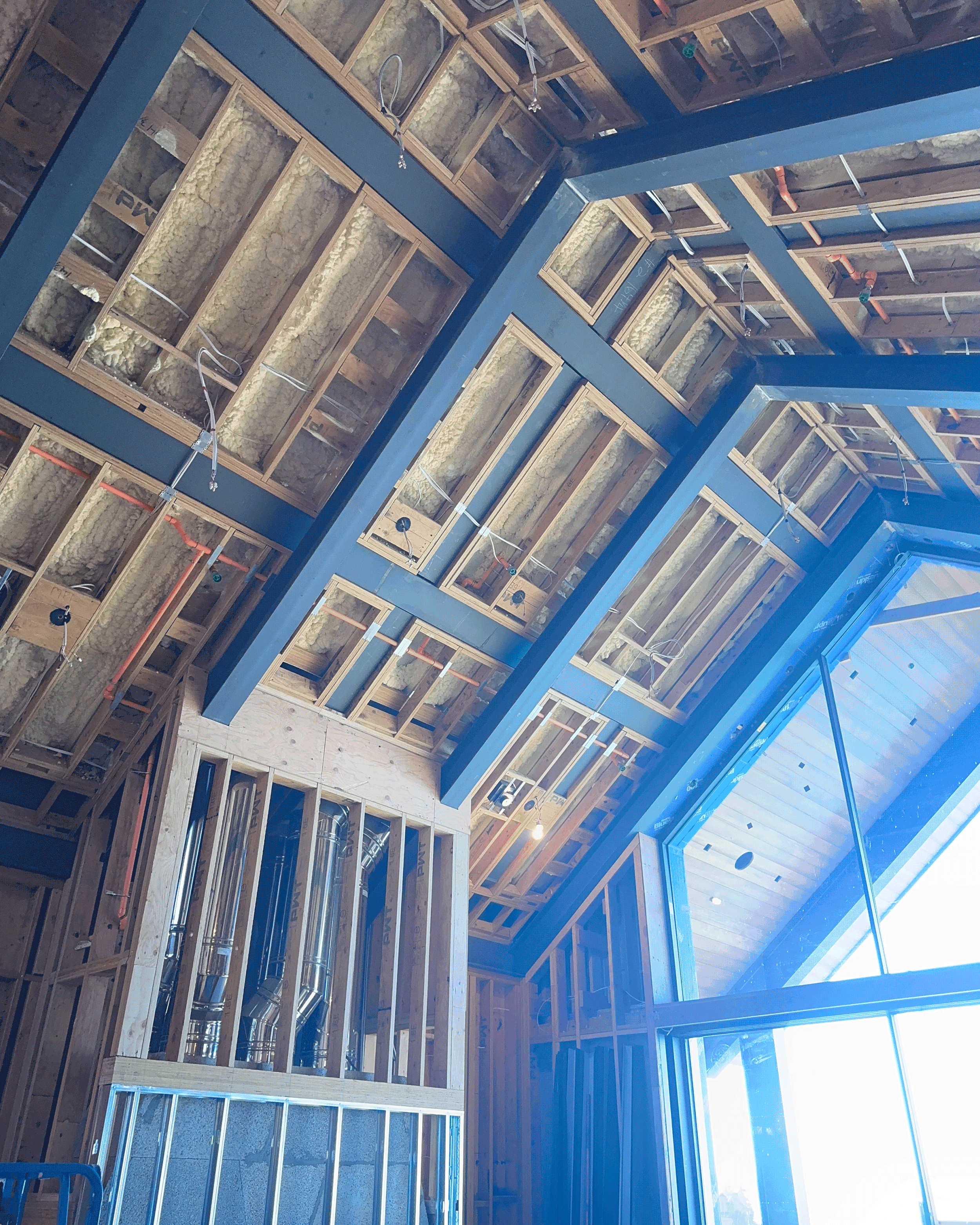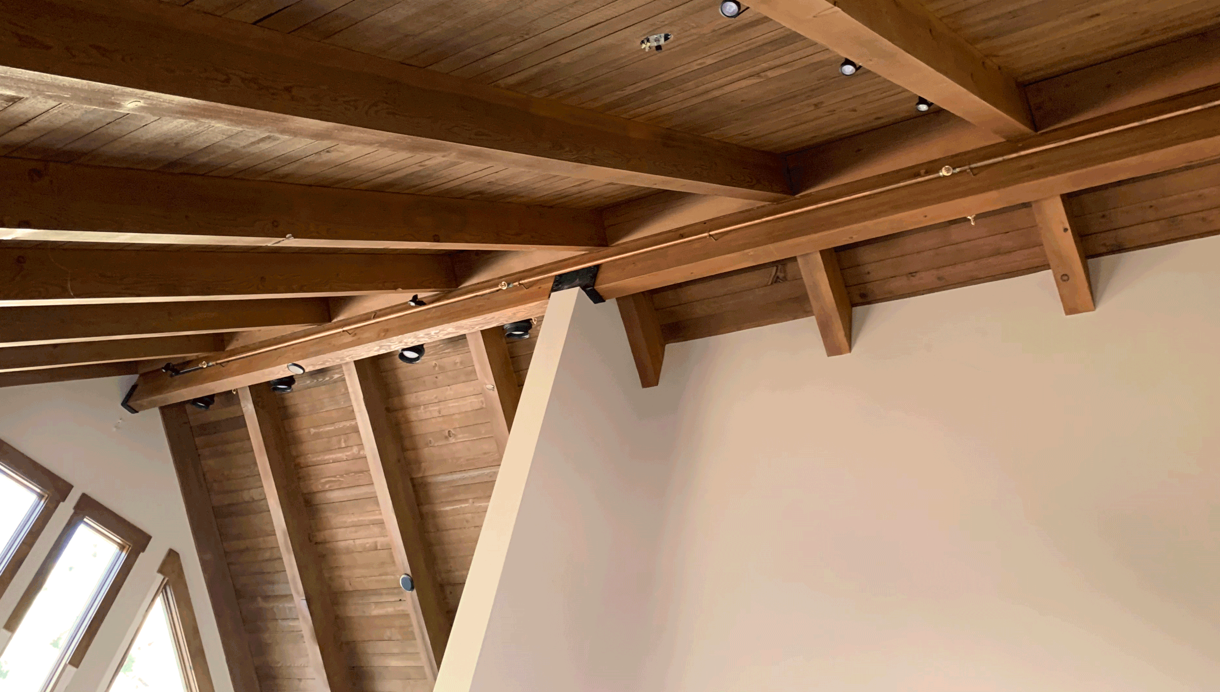 If you look super close at this, you’ll see that this is an exposed copper line attached to the side of an exposed beam. This is an option for retrofits or if you want to have an industrial look. This house added track lighting in the location and basically made it a feature of the ceiling.