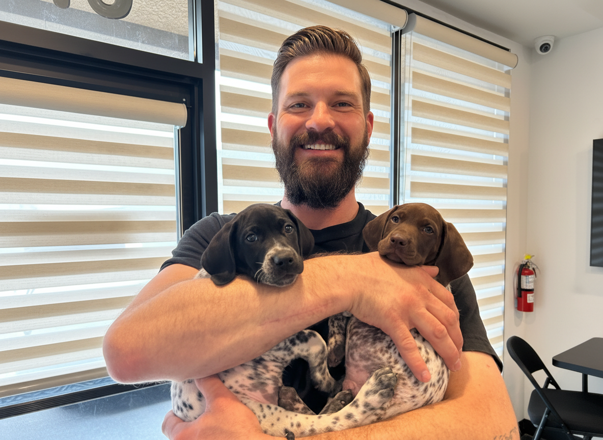 Nick is another guy with a ton of time in the trade, and all of it’s here. He showed up one day when he was 18, and we’ve known him ever since, which is forever in real world terms. Nick is one of these guys who wants to be great and works every day of this life trying to meet that goal. He’s doing okay so far. He is always open to knowing new stuff, and he’s been the point guy on all our jobs for a while now. This year he’s getting married, having a baby boy, and he got these puppies!